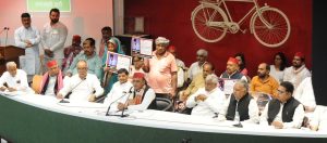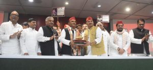 लखनऊ : समाजवादी पार्टी ने बुधवार को लखनऊ स्थित राज्य मुख्यालय के डॉ. राममनोहर लोहिया सभागार में एक भव्य प्रबुद्ध सम्मेलन का आयोजन किया। इस सम्मेलन की अध्यक्षता उत्तर प्रदेश विधानसभा में नेता विरोधी दल माता प्रसाद पाण्डेय ने की, जबकि मुख्य अतिथि के रूप में समाजवादी पार्टी के राष्ट्रीय अध्यक्ष एवं पूर्व मुख्यमंत्री अखिलेश यादव मौजूद रहे। कार्यक्रम की शुरुआत “जय परशुराम” के उद्घोष के साथ हुई और उपस्थित प्रबुद्धजनों ने दोनों हाथ उठाकर 2027 के विधानसभा चुनाव में अखिलेश यादव के नेतृत्व में समाजवादी सरकार बनाने का संकल्प लिया। सम्मेलन का संचालन पूर्व मंत्री पवन पाण्डेय ने किया।