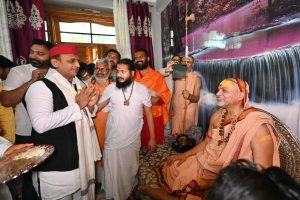 लखनऊ : समाजवादी पार्टी के राष्ट्रीय अध्यक्ष अखिलेश यादव ने गुरुवार को लखनऊ में ज्योतिर्मठ के शंकराचार्य स्वामी अविमुक्तेश्वरानंद सरस्वती से उनके धरना स्थल पर मुलाकात की। करीब एक घंटे चली इस मुलाकात के बाद अखिलेश यादव ने मीडिया से बातचीत करते हुए कहा कि वह शंकराचार्य से आशीर्वाद और ज्ञान लेने पहुंचे थे।उन्होंने कहा कि सच्चे संतों का आशीर्वाद मिलने से अब नकली संतों का दौर खत्म होने जा रहा है।
