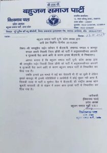 बसपा के लखनऊ और कानपुर मंडल के प्रभारी शमसुद्दीन राईन को प्रदेश अध्यक्ष ने किया निष्कासित