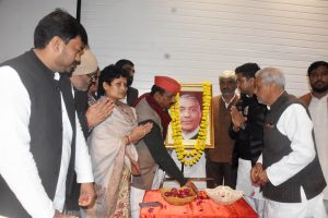वरिष्ठ समाजवादी नेता एवं पूर्व सांसद स्वर्गीय अनंतराम जायसवाल की 11वीं पुण्यतिथि पर शनिवार को सपा के राज्य मुख्यालय, लखनऊ में श्रद्धांजलि कार्यक्रम आयोजित किया गया। समाजवादी पार्टी के राष्ट्रीय सचिव एवं पूर्व कैबिनेट मंत्री राजेन्द्र चौधरी ने राष्ट्रीय अध्यक्ष एवं पूर्व मुख्यमंत्री अखिलेश यादव की ओर से जायसवाल जी के चित्र पर माल्यार्पण कर उन्हें नमन किया। इस अवसर पर प्रदेश अध्यक्ष श्याम लाल पाल,पूर्व सांसद अरविंद सिंह सहित पार्टी के कई वरिष्ठ नेता, विभिन्न प्रकोष्ठों के पदाधिकारी और कार्यकर्ता मौजूद रहे। सभी ने स्व.अनंतराम जायसवाल के समाजवादी विचारधारा के प्रति योगदान को याद करते हुए उन्हें सच्चा जननेता बताया। श्रद्धांजलि सभा में उनके परिवारजन भी शामिल हुए।