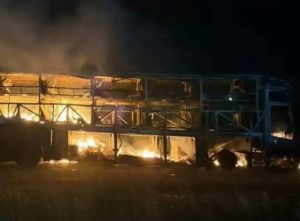 बाइक से टक्कर के बाद बस में लगी आग