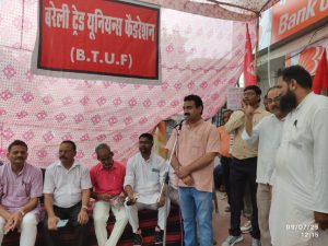 बरेली में बैंक ऑफ बड़ौदा के सामने कर्मचारियों और श्रमिकों ने किया प्रदर्शन