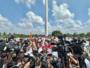 लखनऊ : स्वतंत्रता दिवस के अवसर पर समाजवादी पार्टी के राष्ट्रीय अध्यक्ष, और पूर्व मुख्यमंत्री अखिलेश यादव ने लखनऊ स्थित डॉ. राममनोहर लोहिया सभागार में विभिन्न जिलों से आए सैकड़ों कार्यकर्ताओं को संबोधित किया। उन्होंने सभी को स्वतंत्रता दिवस की बधाई देते हुए कहा कि “आज़ादी बड़ी कुर्बानियों के बाद मिली है, लेकिन BJP ने देश को संकट में डाल दिया है। अमेरिका लगातार दबाव डाल रहा है और अपना नॉन-वेज दूध भारत पर थोपना चाहता है।”